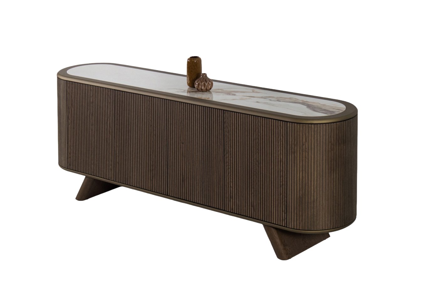 Ένας μπουφές που εμπνέεται από την μπαρόκ εποχή και τη φέρνει στο σήμερα. Η κεραμική του επιφάνεια με σχέδιο μαρμάρου συνδυάζεται ξεχωριστά με το σώμα του επίπλου και μαζί προσφέρουν μία πινελιά υψηλής διακόσμησης. Άφθονοι χώροι υπόσχονται να αποθηκεύσουν τα πολύτιμα αντικείμενά σας με ασφάλεια και διακριτικότητα.
