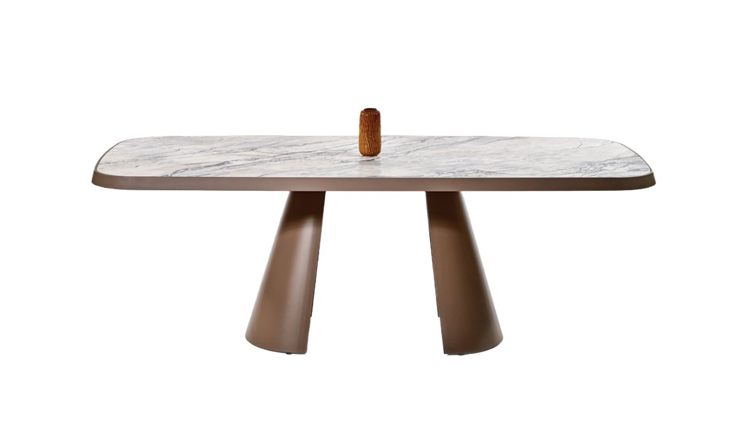 Η απόλυτη ένωση πολυτέλειας και γεωμετρικής αρμονίας. Με επιφάνεια από εκλεπτυσμένο κεραμικό που θυμίζει μάρμαρο και βάση σε γλυπτική μορφή, αυτό το τραπέζι τραπεζαρίας απογειώνει τον χώρο με μια λιτή αλλά επιβλητική αισθητική. Ιδανικό για εσωτερικά περιβάλλοντα με σύγχρονο και εκλεπτυσμένο χαρακτήρα.